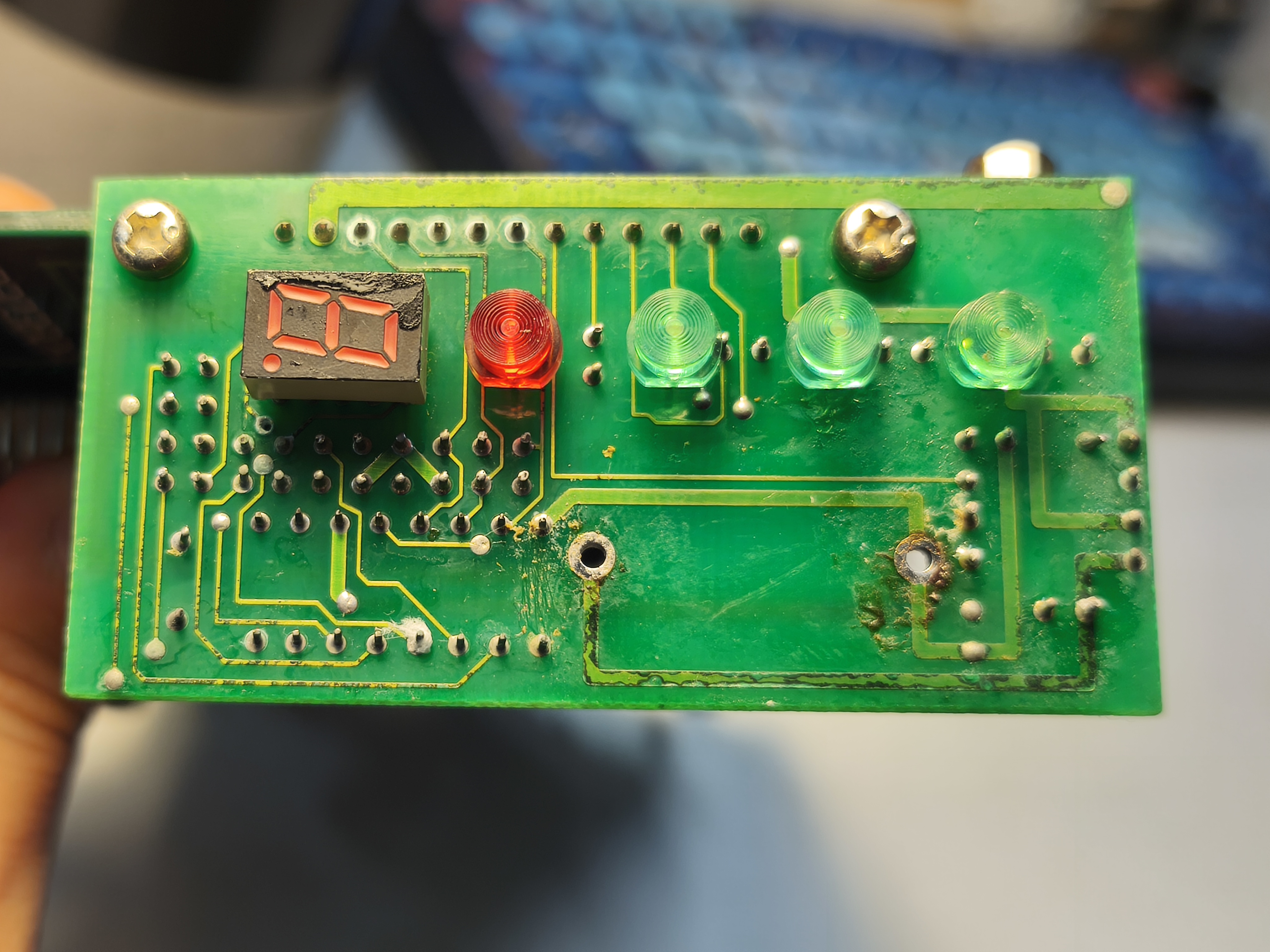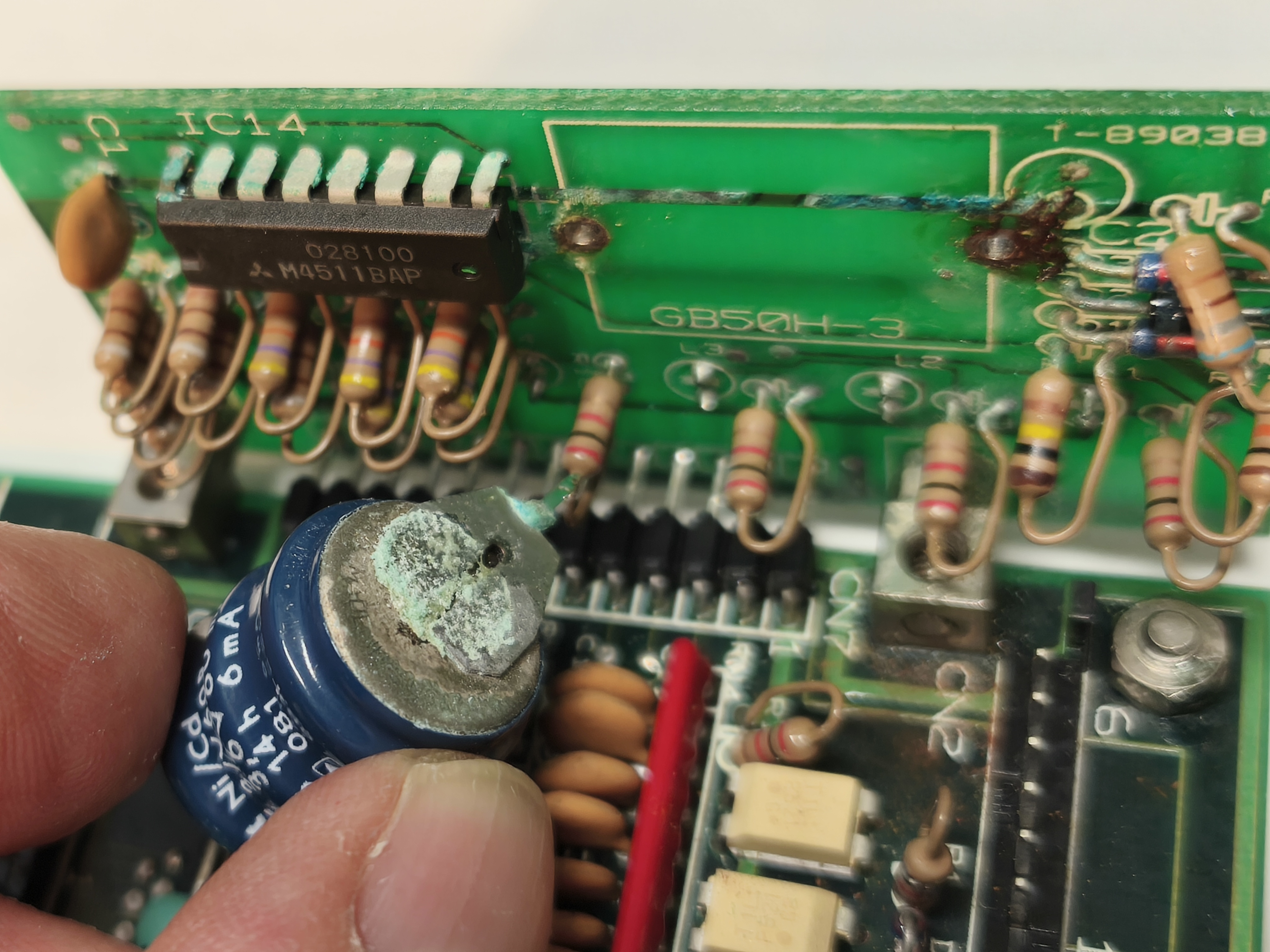 Inside the controller a NiCd backup battery used for the hour counter had leaked and contaminated part of the PCB.